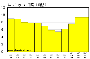 | 月次の平均日照時間数 |