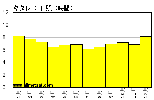 | 月次の平均日照時間数 |