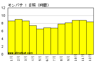 | 月次の平均日照時間数 |